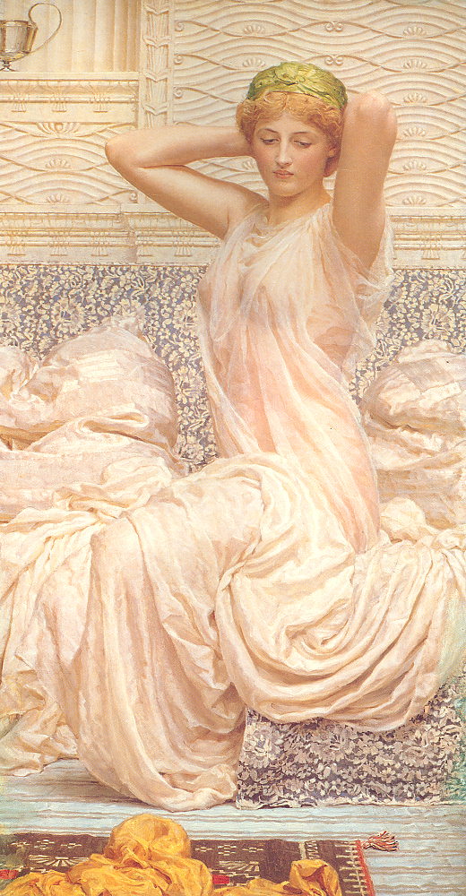 Albert Joseph Moore was born in 1841 in York, England, and became a notable figure of the Aesthetic Movement in Victorian art. He trained at the Royal Academy Schools and developed a style focused on harmony, beauty, and decorative composition rather than narrative. Moore is best known for his serene paintings of idealized female figures set within classical or imagined interiors. His work emphasizes rhythm, pattern, and balanced color relationships.