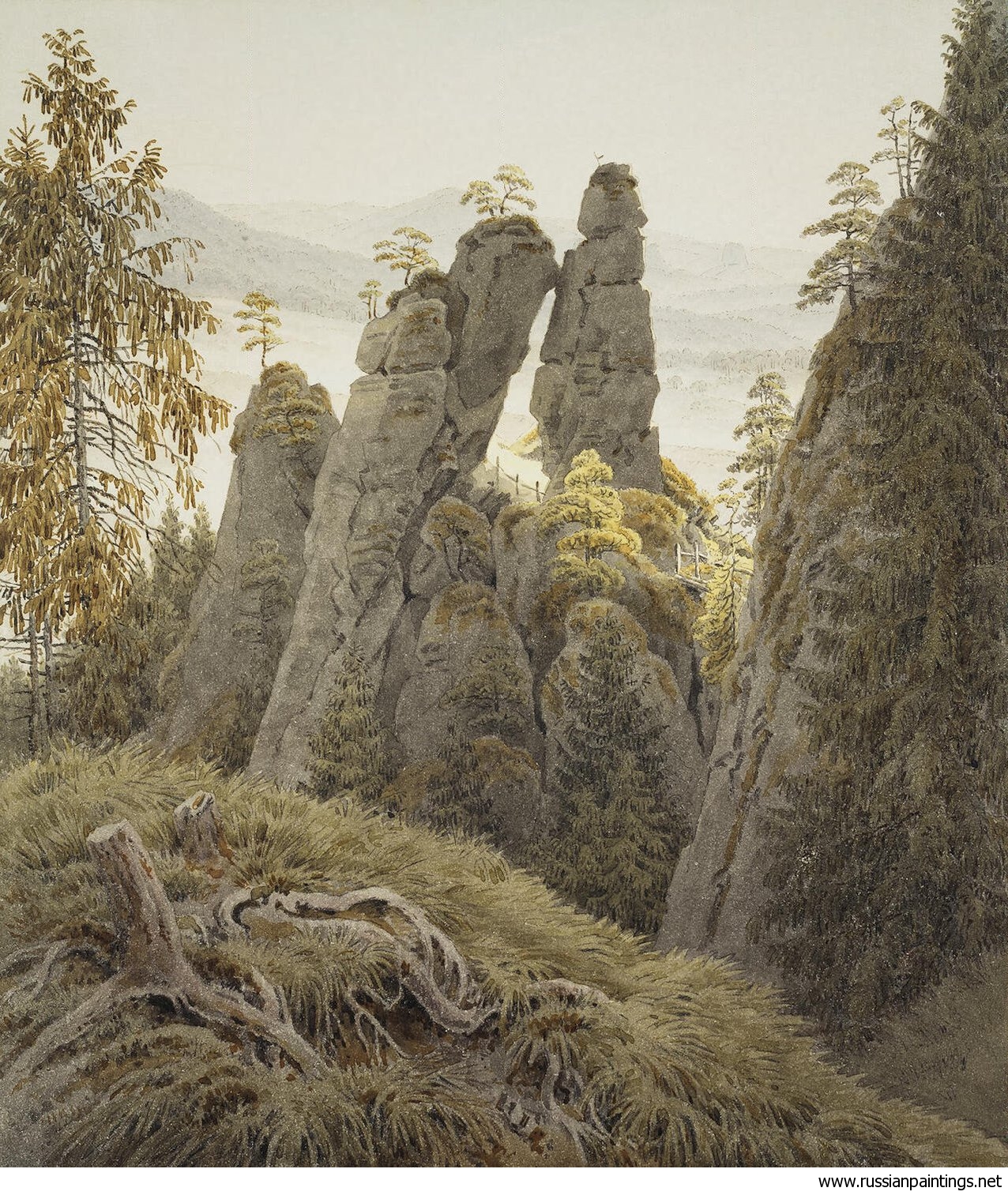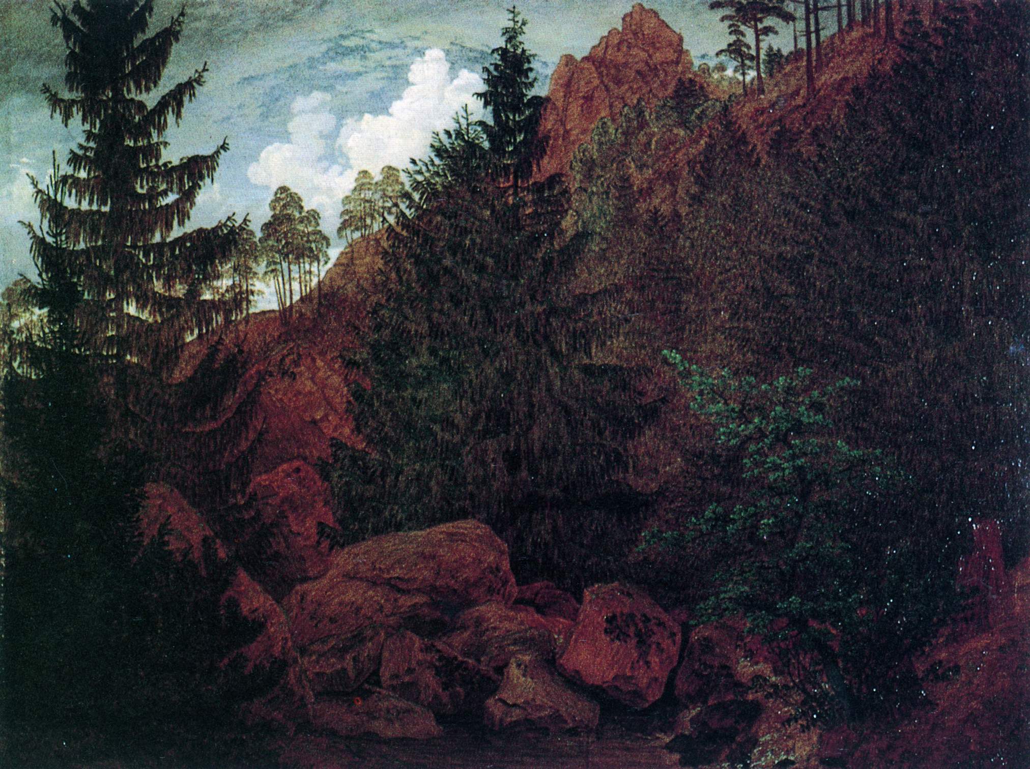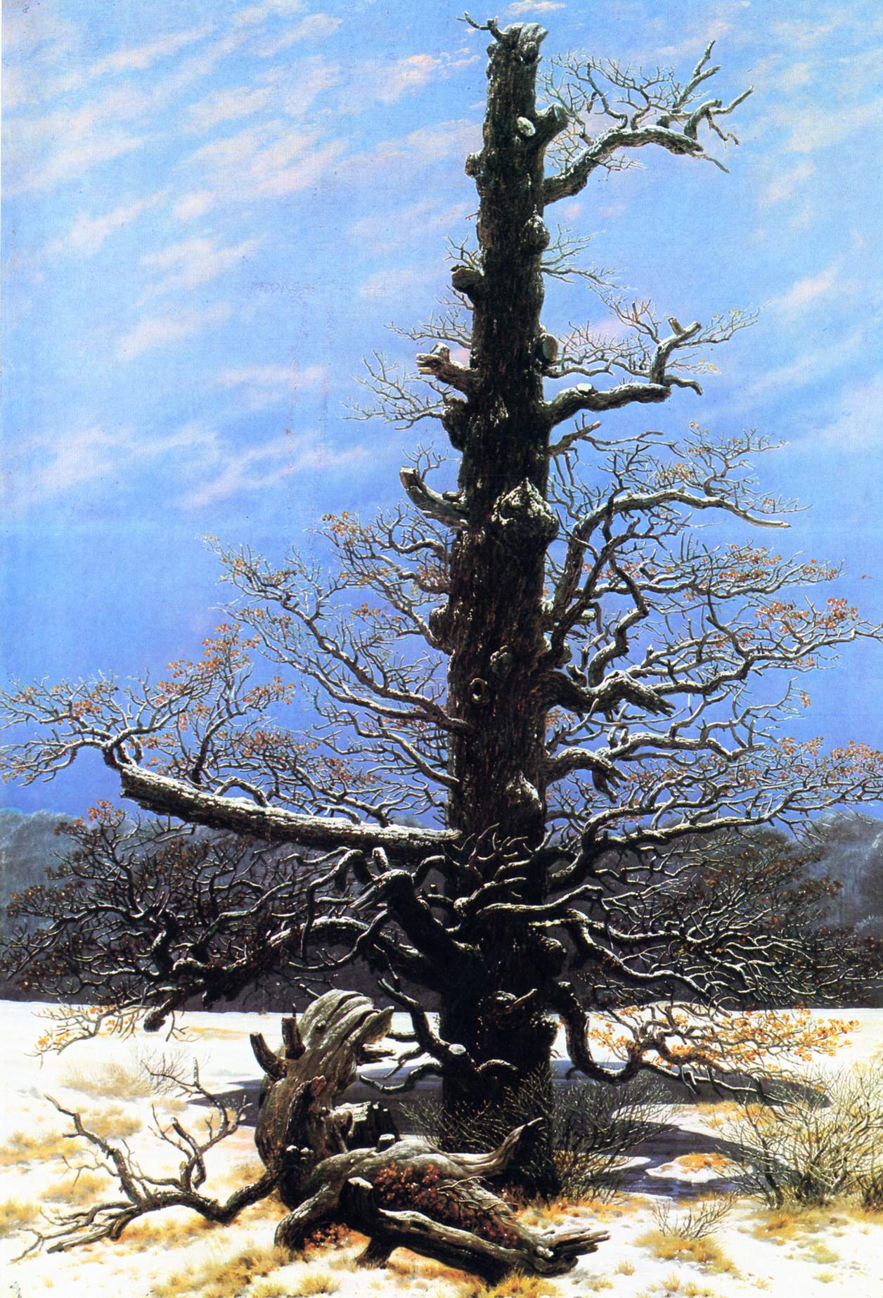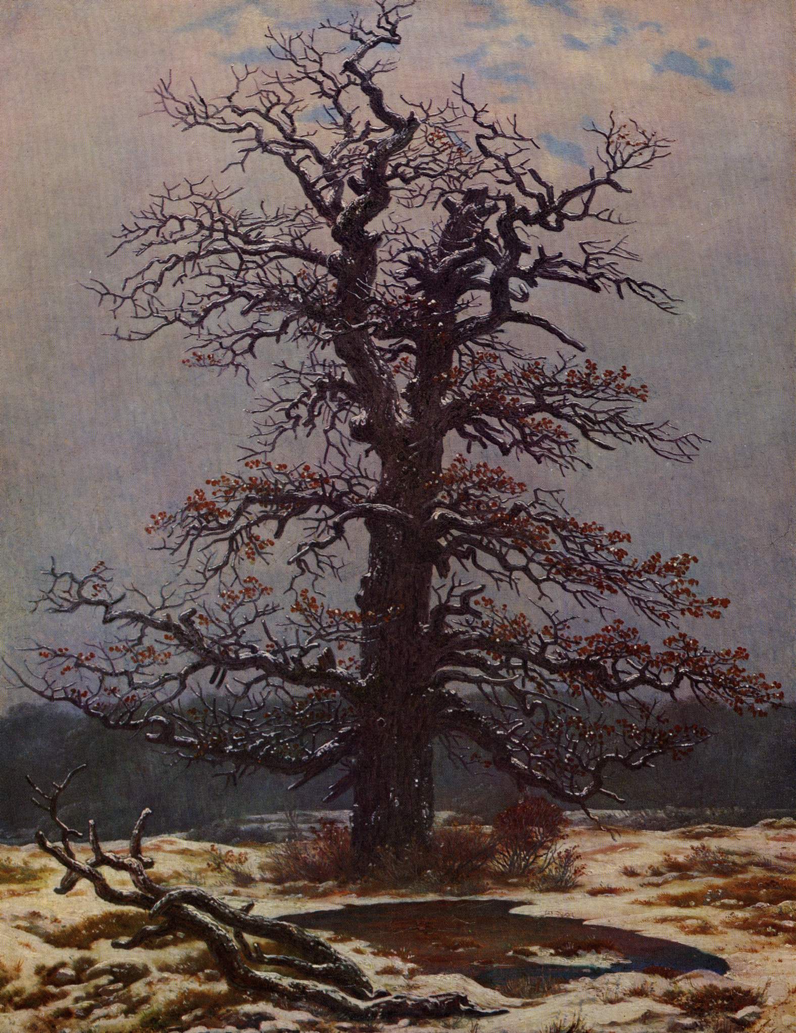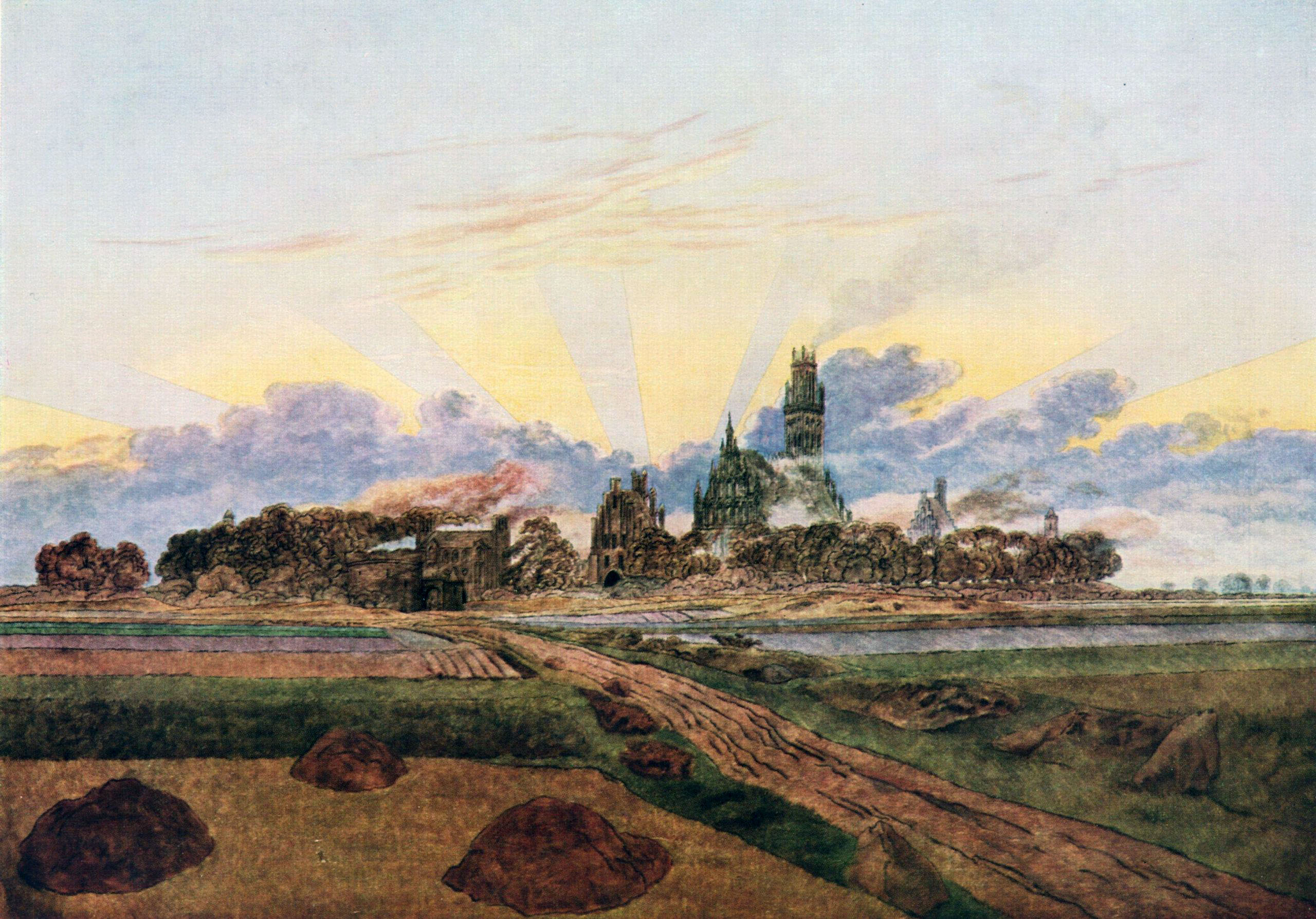 Rather than depicting nature realistically, Friedrich used it symbolically to express ideas of faith, mortality, and the sublime. Motifs such as ruins, mountains, fog, and moonlight recur throughout his work. His compositions invite quiet reflection rather than dramatic action. Although respected by some contemporaries, his art fell out of favor later in his life. Friedrich died in 1840. In the 20th century, his work was rediscovered and recognized as central to Romanticism and modern ideas of landscape and inner experience.