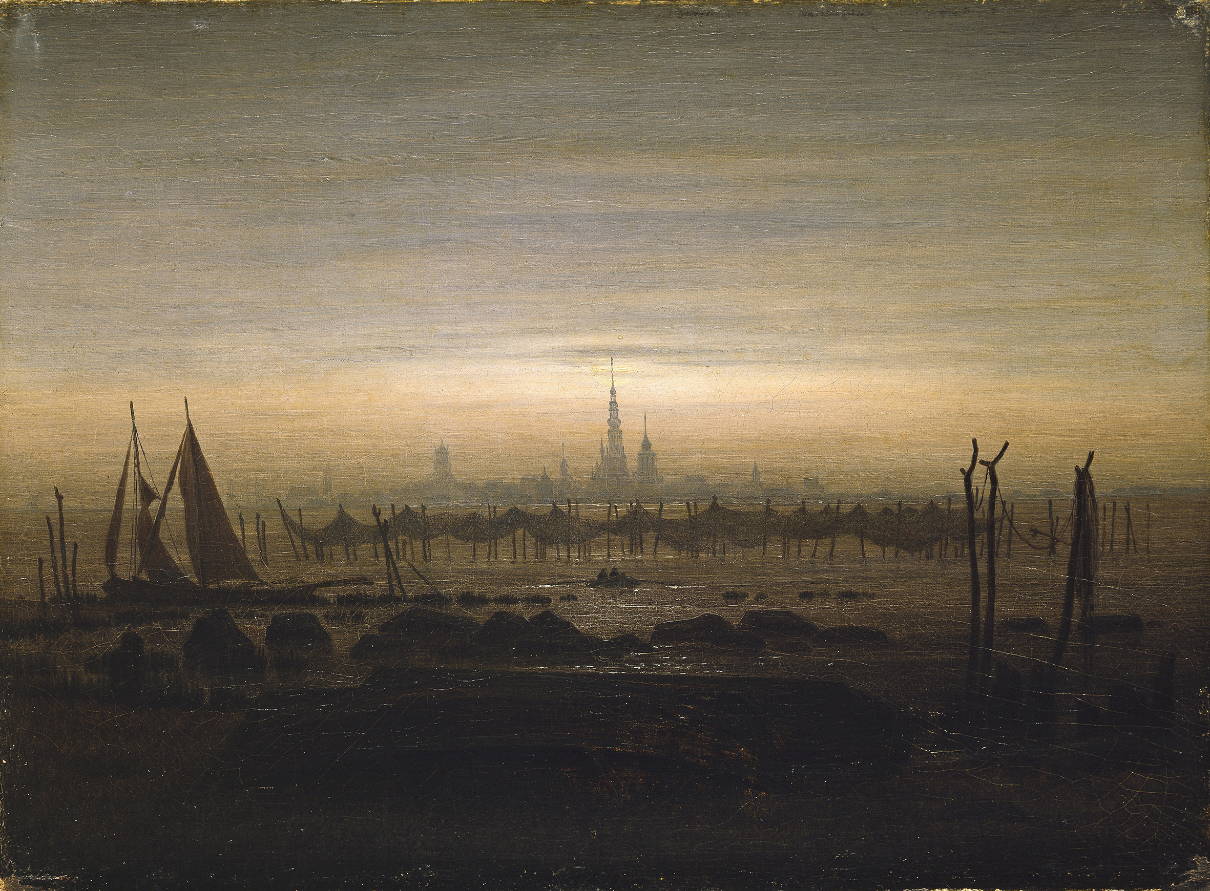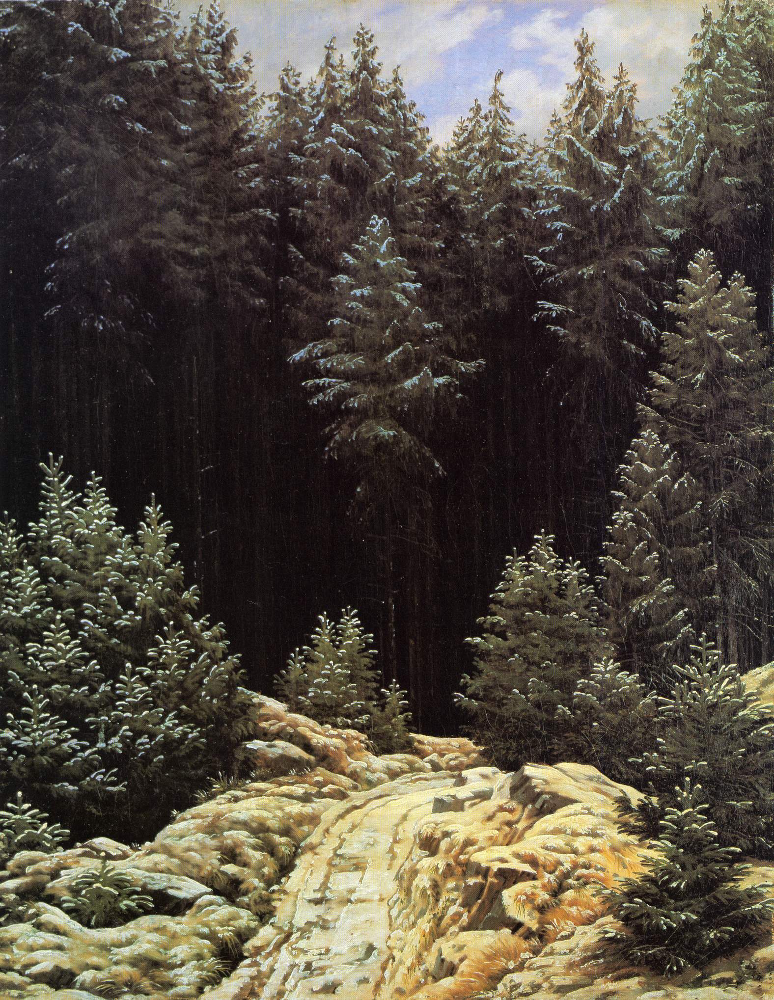 Caspar David Friedrich was born in 1774 in Greifswald, then part of Swedish Pomerania, and became the leading figure of German Romantic painting. He studied in Copenhagen before settling in Dresden, where he developed a deeply personal artistic vision. Friedrich is best known for his contemplative landscapes that explore nature as a source of spiritual and emotional meaning. His paintings often feature solitary figures set against vast, silent landscapes.