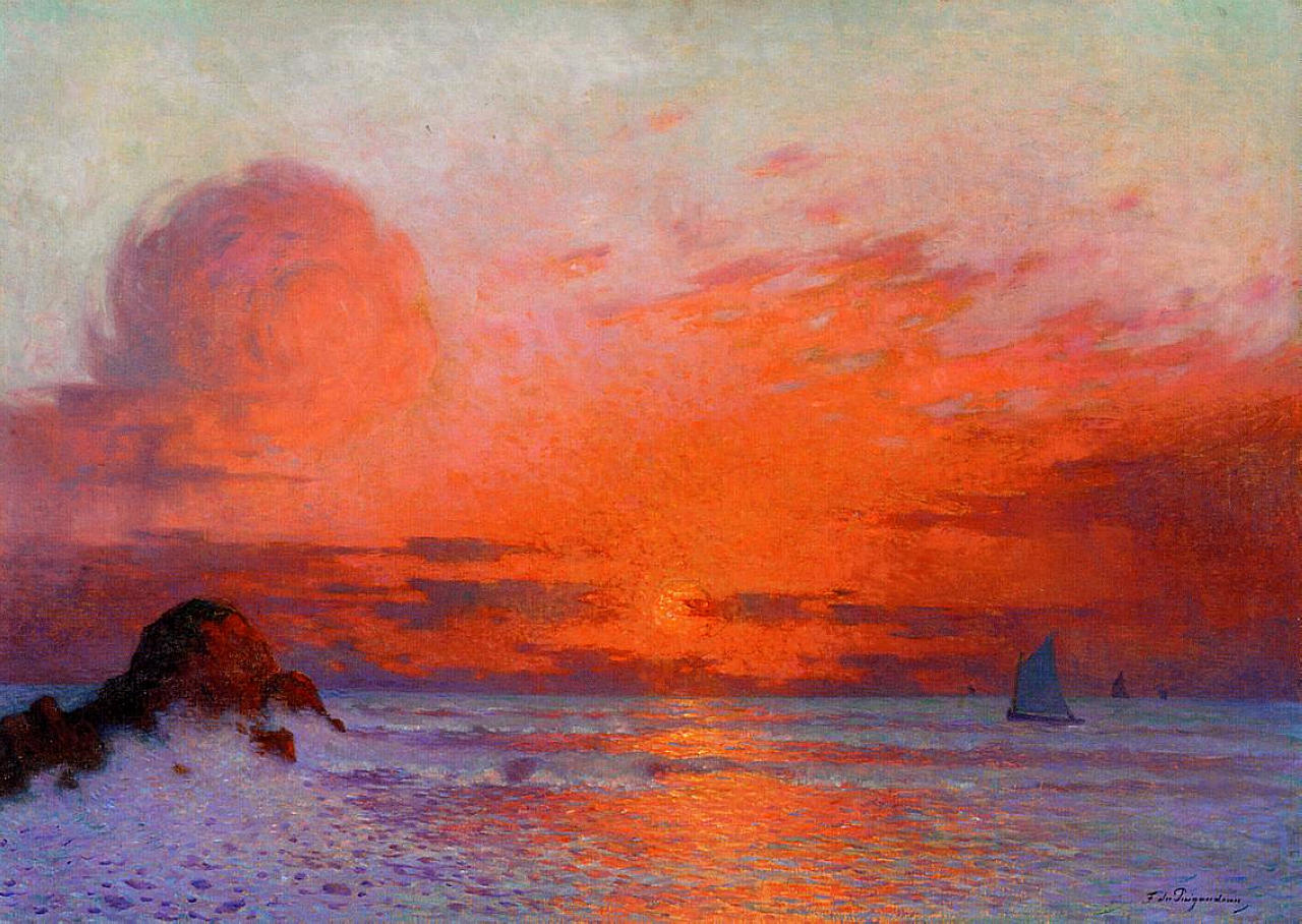 Light plays a central role in his paintings, creating a sense of atmosphere and quiet enchantment. He frequently depicted Breton landscapes and coastal life, blending realism with a poetic mood. Du Puigaudeau preferred rural surroundings and lived much of his life away from major art centers. Though not widely recognized during his lifetime, his work gained greater appreciation later on. He died in 1930. Today, his paintings are admired for their vibrant color and evocative treatment of light.