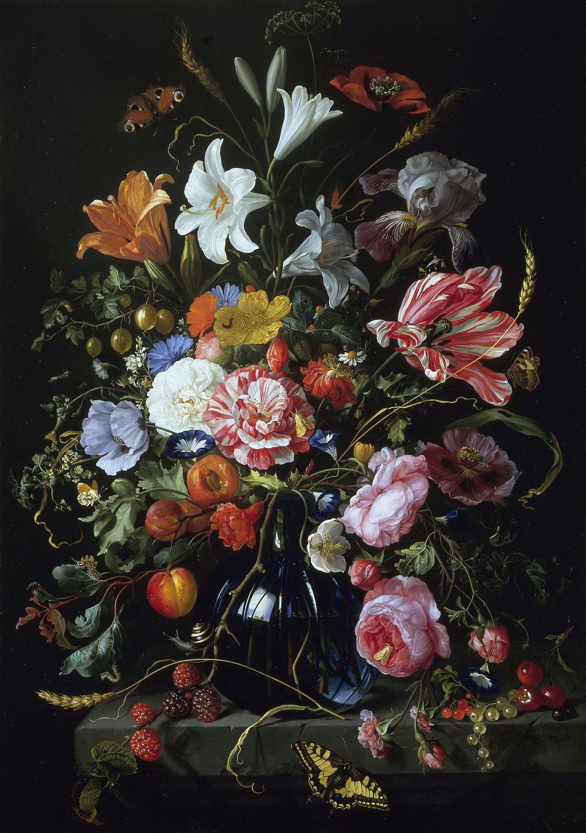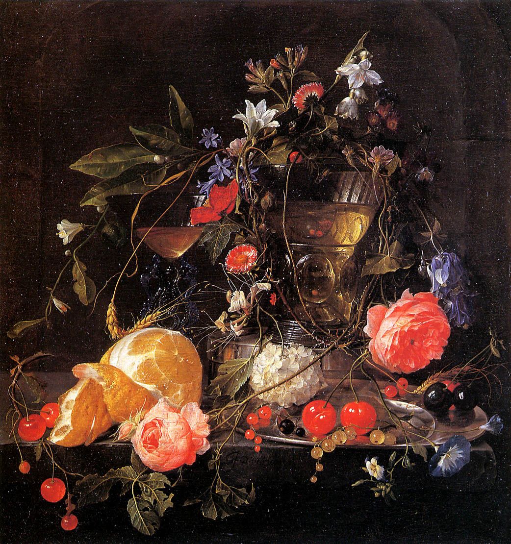 Jan Davidsz. de Heem was born in 1606 in Utrecht and became one of the most distinguished still life painters of the Dutch Golden Age. He trained in both Utrecht and Antwerp, absorbing influences from Dutch and Flemish artistic traditions. De Heem is best known for his lavish still lifes filled with flowers, fruit, glassware, and luxurious objects. His compositions are rich in color, texture, and symbolic meaning.